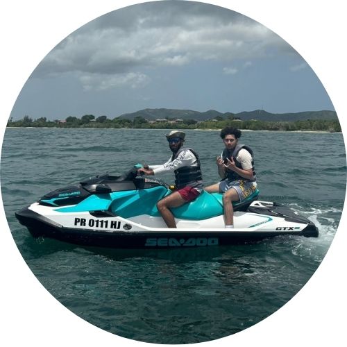 Bienvenido a nuestra galería, donde capturamos los momentos más memorables de nuestros visitantes en nuestros Tours en Jet Ski. Desde las aguas cristalinas de El Combate hasta la emoción de los jet skis surcando la costa oeste de Puerto Rico, cada imagen revela la belleza natural y la aventura que te espera. Sumérgete en la serenidad de nuestros paisajes y revive momentos de alegría compartida. Únete a nosotros y deja que nuestras fotos te inspiren a planificar tu propia aventura inolvidable con Jet Ski Tours Puerto Rico.